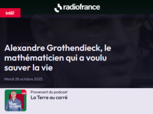 The videos of the conference of the Grothendieck Institute recently held in Paris at the Henri Poincaré Institute are now available from the Institute’s YouTube channel: